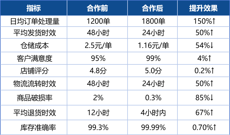 1、發貨及時率100%、發貨準確率99.99%、庫存準確率99.99%